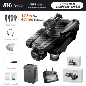 - 4K-verstellbare Kamera (dreiachsiges mechanisches Stabilisierungsgimbal + elektronische Stabilisierung und Verwacklungsschutz + Laser-Hindernisvermeidung)