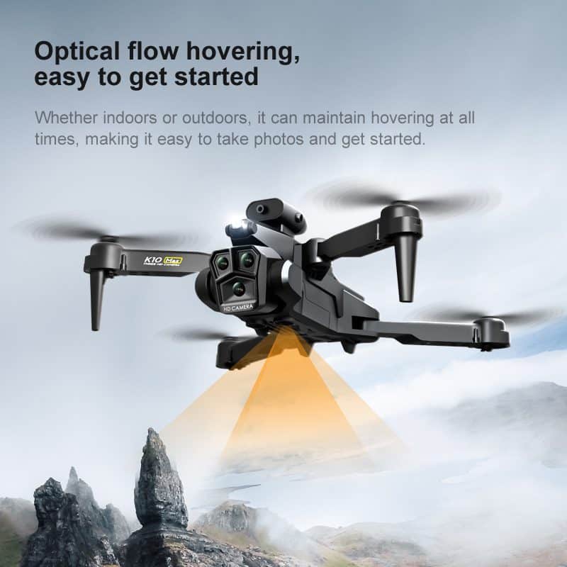 Die K10MAX-Drohne mit Dreifachkamera bietet außergewöhnliche Vielseitigkeit und ermöglicht dank ihres fortschrittlichen Dreifachobjektivsystems hochauflösende Aufnahmen aus verschiedenen Perspektiven. Das optische Schwebesystem und die umfassende automatische Hindernisvermeidung in vier Richtungen sorgen für einen stabilen und sicheren Flug. Intelligente Funktionen wie programmierbare Flugbahnen und Gestensteuerung vereinfachen komplexe Aufnahmen, während 360°-Stunts mit einem Klick Ihren Aufnahmen dynamisches Flair verleihen. Mit zuverlässiger HD-Bildübertragung und kreativen Tools wie Echtzeit-Schönheitsfiltern und MV-Produktion ist sie eine ideale All-in-One-Lösung sowohl für Luftbildfotografie-Enthusiasten als auch für Hobbyfotografen, die intuitive, funktionsreiche Leistung suchen.